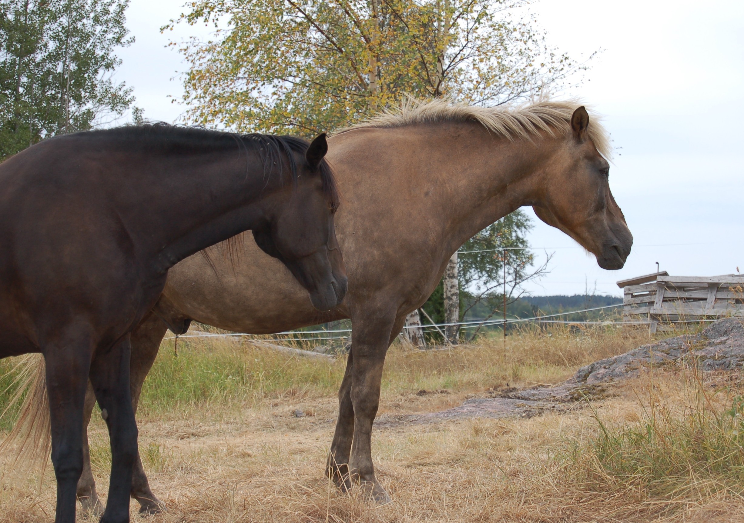 Aika hyvä kuva hevosista, jotka odottelevat hoitajaansa.